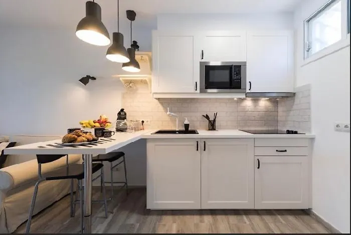 La cucina completamente attrezzata ha un microonde, un bollitore elettrico e un frigo.